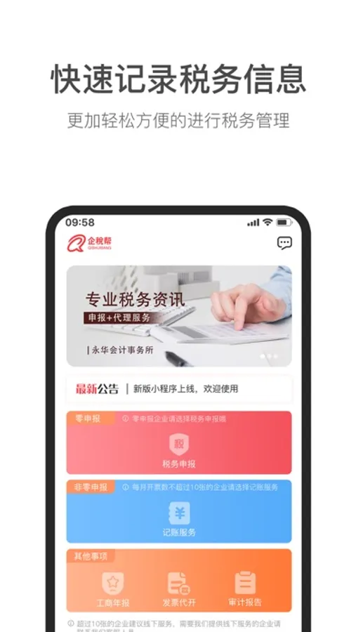 Q企税帮APP主要有以下几点功能: