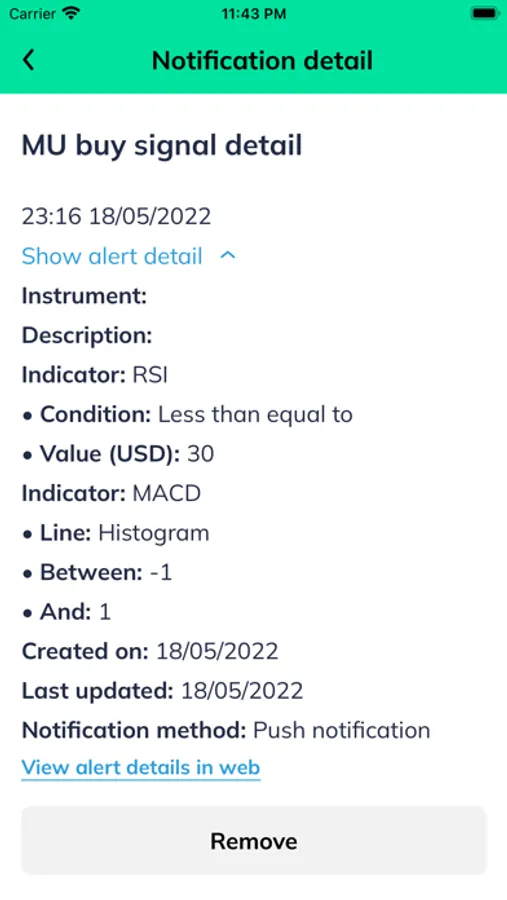 The app user can receive push notifications for trading alerts on popular crypto, stocks, and commodities. The user can also view and edit existing alerts.