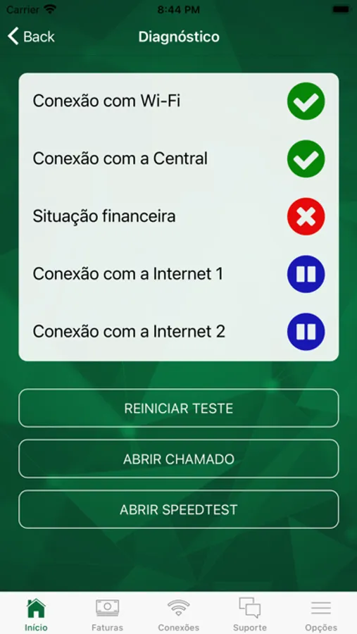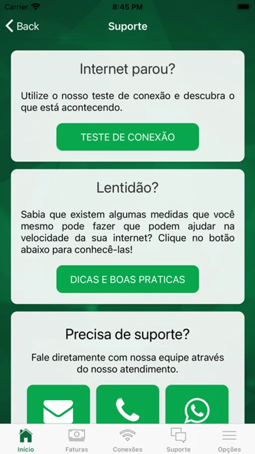 • Realização testes de conexão e velocidade;
