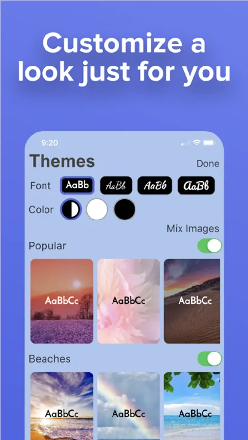 * 100’s of background images, plus dozens of fonts, to customize your experience