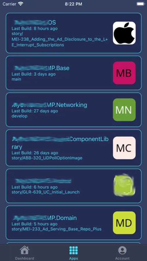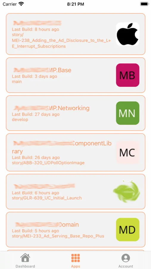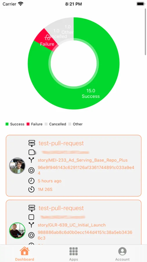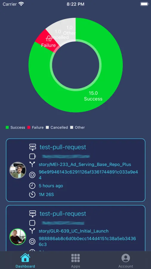 Upon launching this unofficial app, users are presented with a dashboard that shows a list of their current builds, including their status, progress, and any associated metadata such as the commit ID or branch name.