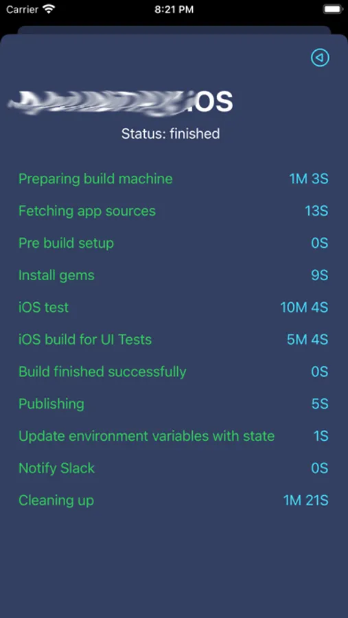 Tapping on a specific build brings up a detailed view that displays more information about the build, including its log output, build artifacts, and any test results.