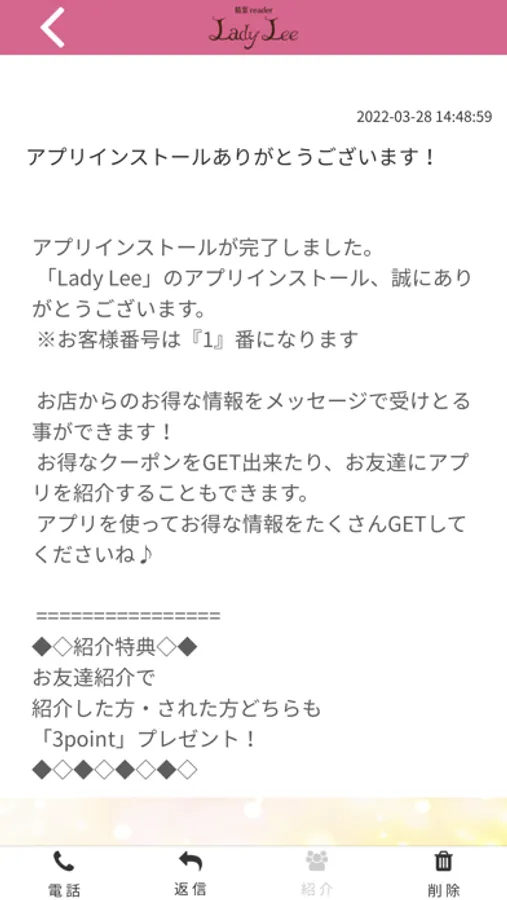 Lady LeeのアプリをSNSを通じてお友達に紹介する事ができます。