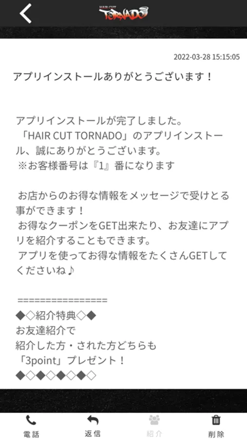 TORNADOのアプリをSNSを通じてお友達に紹介する事ができます。