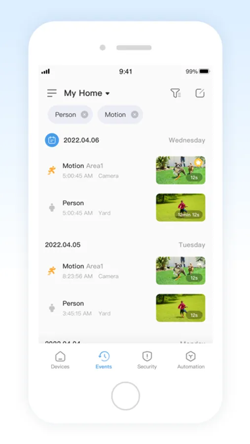 2. Security: Check out home security in real-time and playback video recording from your cameras or cloud.