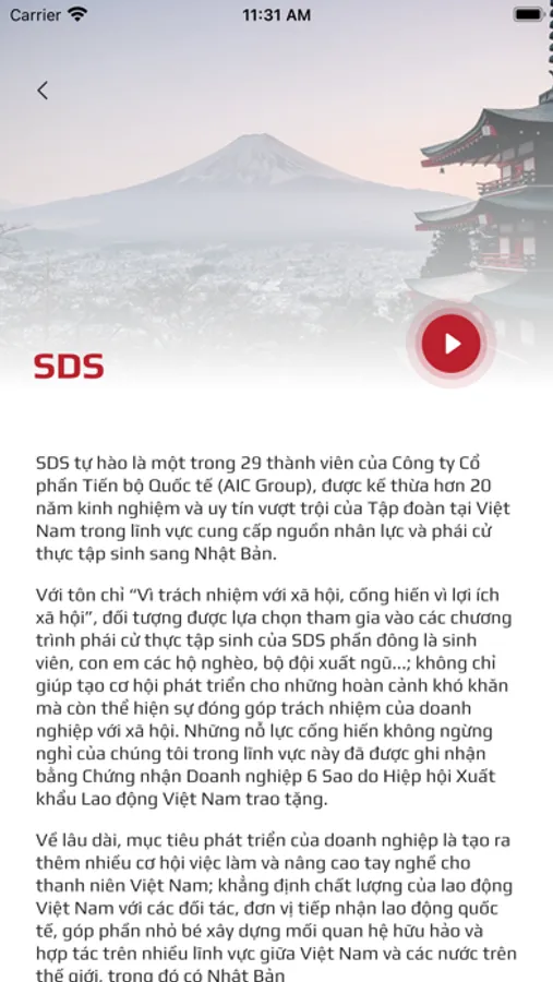 Ứng dụng XKLĐ giúp các bạn trẻ đang mong muốn tìm kiếm cơ hội làm việc tại các thị trường lao động văn minh, chuyên nghiệp và phát triển như Nhật Bản, Đài Loan, Đức… kết nối với SDS - doanh nghiệp với hơn 20 năm kinh nghiệm và uy tín vượt trội trong lĩnh vực cung cấp nguồn nhân lực và phái cử thực tập sinh sang tu nghiệp tại nước ngoài.