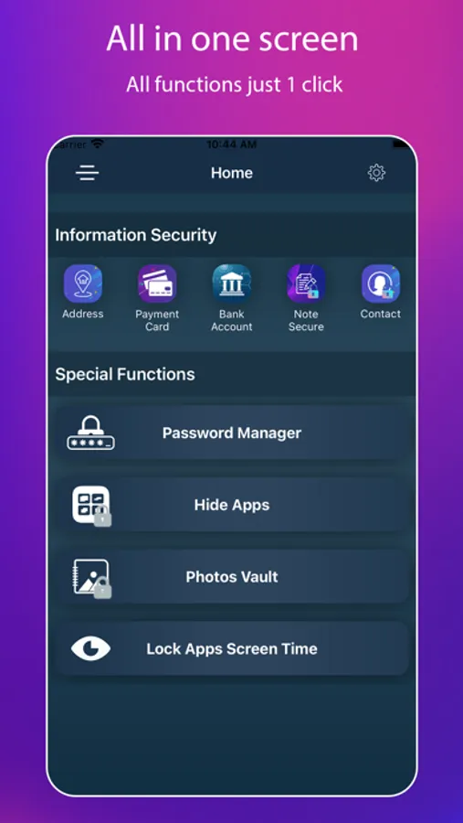 This application will help you manage all your documents as well as personal information in a confidential manner, you will use a separate password that only you know.