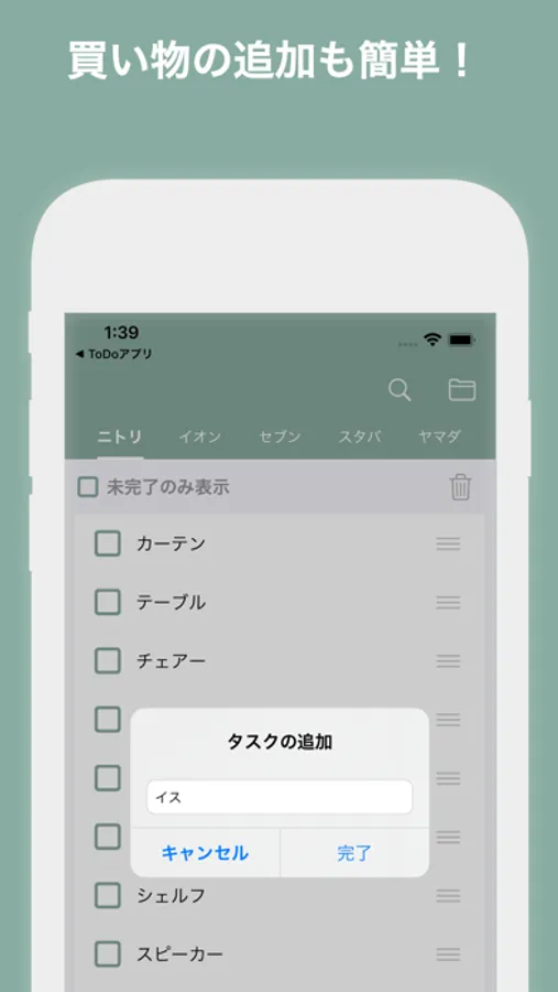 【タブでカテゴリー分けして買い物リストを管理可能】