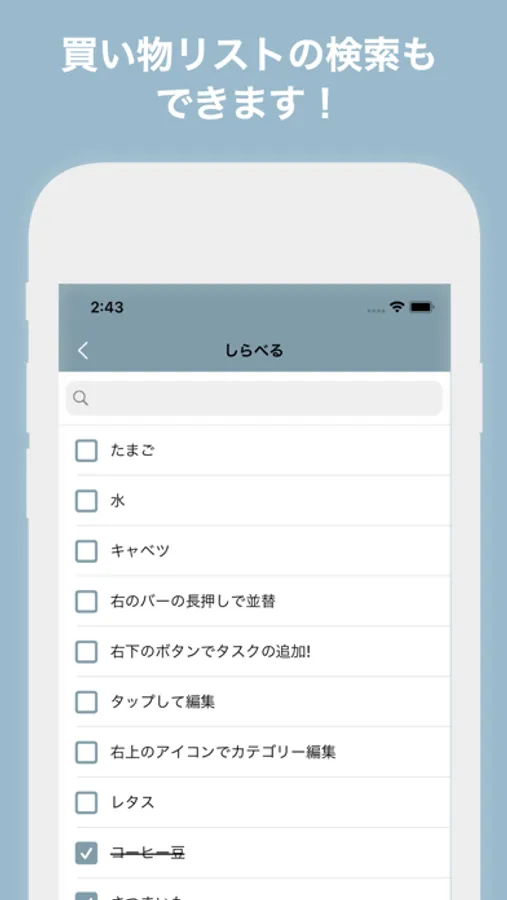 買い物リストは一覧検索可能なので、すでに登録しているか確認するのも一瞬です。