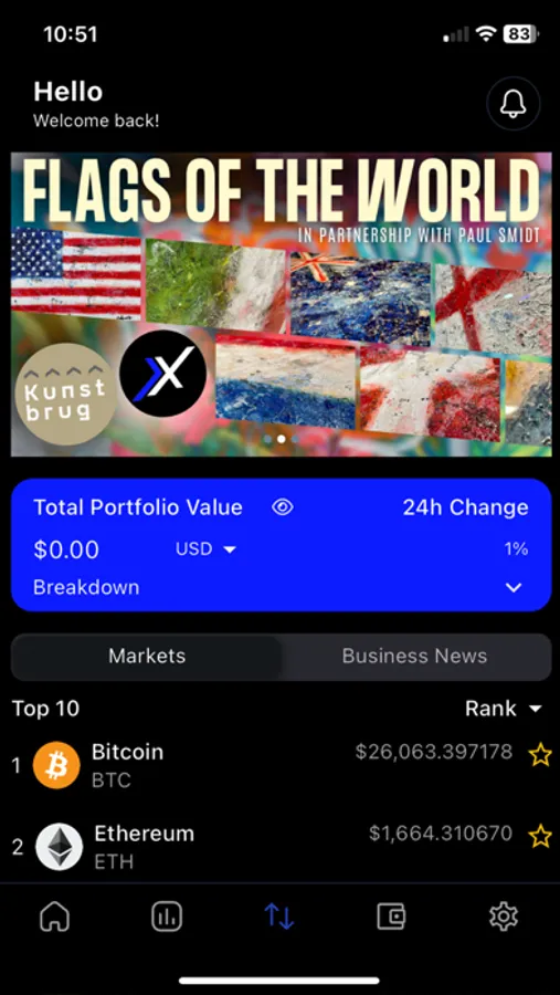 Sending and receiving cryptocurrencies, storing cryptocurrencies and a crypto exchange with around 90,000 trading pairs. Also, latest news, price alerts and live prices of 20 cryptocurrencies.