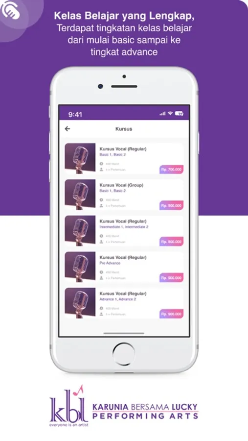 KBL Performing Arts memiliki jenis kelas kursus, seperti: