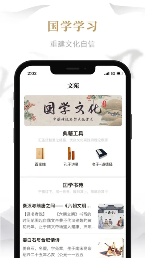 国学文苑软件是国学在线学习平台,云集国学大师作品,我们志于重建传统文化自信,传播弘扬历代古贤优质思想文化。国学是中国传统学术的简称,囊括诸子百家、民族思想、智慧的结晶,对中国几千年来的政治、经济、文化等各个领域都产生了极其深刻的影响。特色功能1、提供百家姓、道德经、孔子讲易等海量国学经典古籍查阅;2、国学古玩:搜罗国学古玩物件,喜欢古风小物件的您不容错过;3、四季养生:传统节气养生法,助你年年益寿。作品,我们志于重建传统文化自信,传播弘扬历代古贤优质思想文化。国学是中国传统学术的简称,囊括诸子百家、民族思想、智慧的结晶,对中国几千年来的政治、经济、文化等各个领域都产生了极其深刻的影响。特色功能1、民俗常用小工具:查百家姓、查解梦、查周易典籍;2、国学古玩:搜罗国学古玩物件,喜欢古风小物件的您不容错过;3、四季养生:传统节气养生法,助你年年益寿。