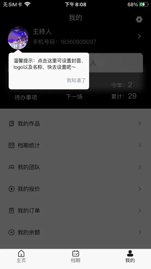 -可查看已接档期、待收款、已收款统计。