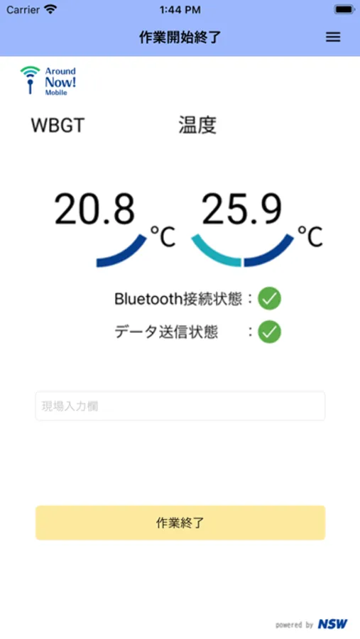 温湿度センサとスマホとのBLE連携を行うことで、作業者の健康を監視します。