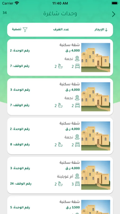 8. Vacant unit's service, which allow the user to view a list of vacant waqfi units