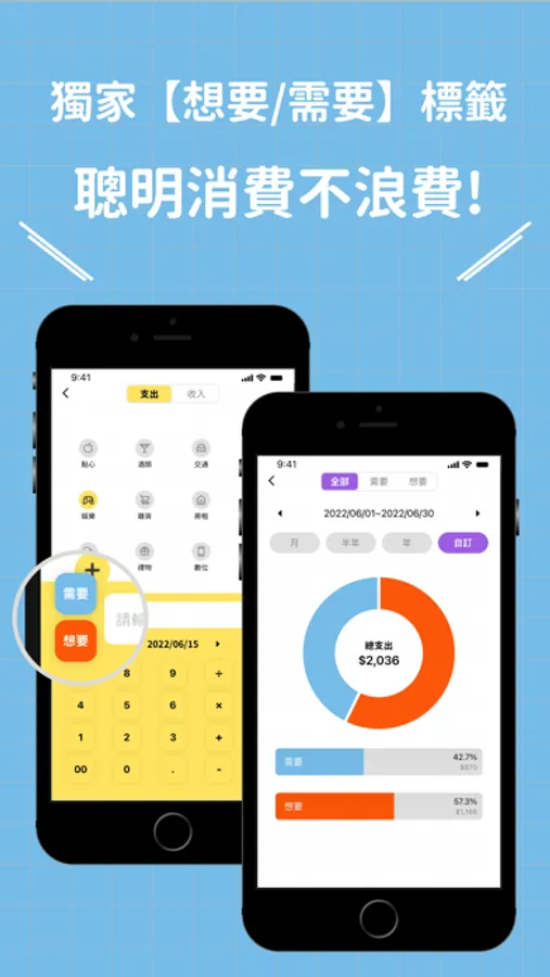 更在日常記帳中規劃了【想要/需要】標籤,幫助使用者在記帳時能夠思考消費目的,並能透過報表定期檢視消費細節,真正做到聰明消費。