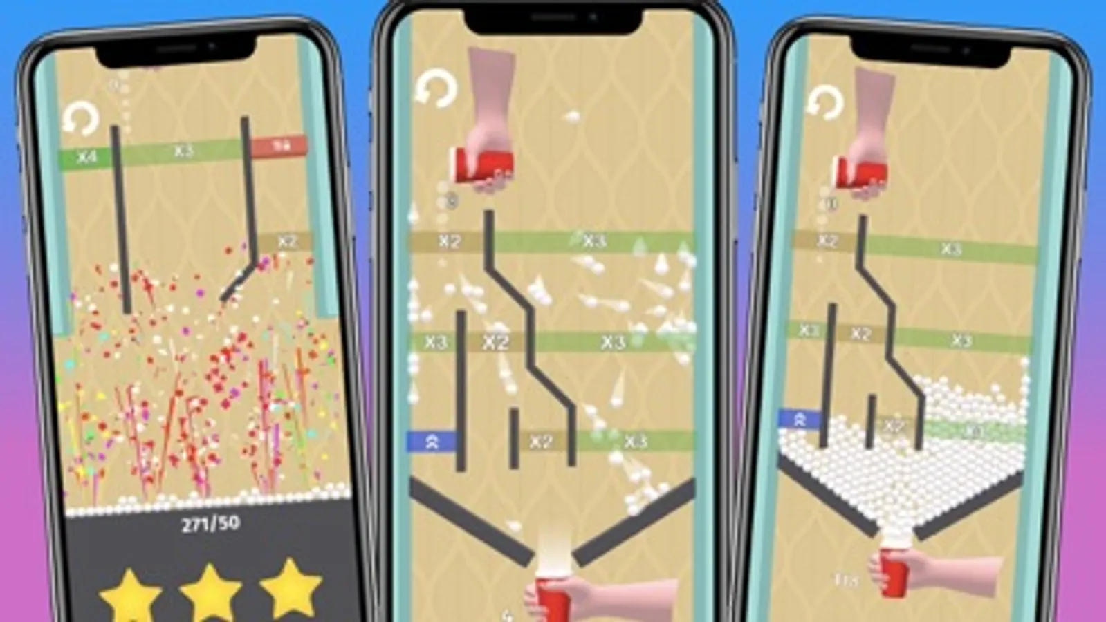 Drop the balls from the cup through the bonuses' gates, to multiply them in the best path possible and try to reach the goal at the end of the level.