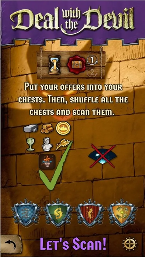 This is a supplementary app for board game Deal with the Devil from Czech Games Edition. This app is not usable on its own, and physical board game is required. The app allows players to scan chests with trade offers from other players to see which players should receive which chests.