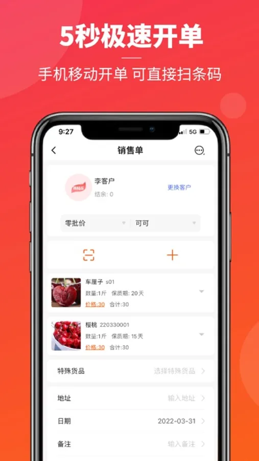 支持欠货、订户等多种开单模式,自动汇总金额,速度快、不出错