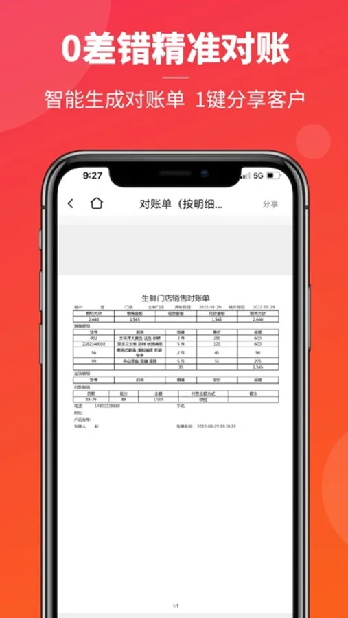 根据时间、客户等多维度智能生成对账单,一键分享客户,对账快准稳