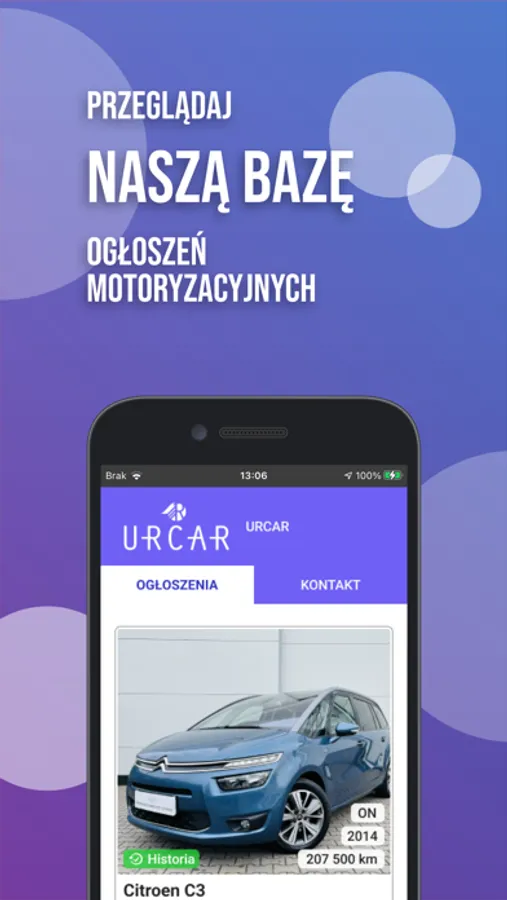 Firma URCAR działa na rynku motoryzacyjnym od ponad 8 lat. Zajmujemy się importem pojazdów z USA i Kanady organizując dla naszych klientów cała logistykę oraz dokumentację związaną z zakupem pojazdu. Aplikacja mobilna URCAR to kolejny krok w rozwoju naszej firmy. Dzięki aplikacji: