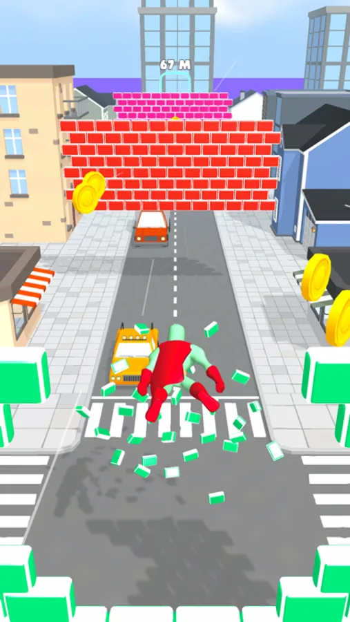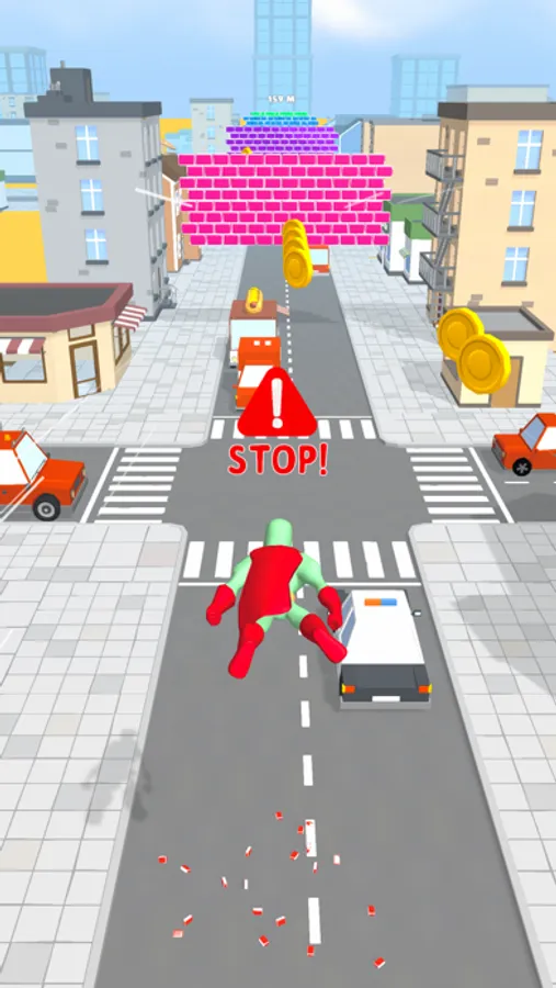 Fly and try to get to your destination! Break walls but don't get tired or you might fall. Upgrade yourself and get to the finish!