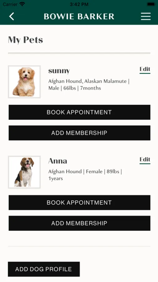 Bowie Barker Bath and Groomerie is shaking up the dog grooming game with customized services for every pup! Our app makes it easy to manage your account, book appointments, update your membership settings, pay for services and retail, and view your pup’s wellness checks after every service.