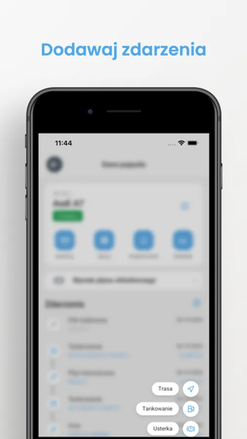 Aplikacja pozwala na zarządzanie pojazdami poprzez dodawanie i śledzenie zdarzeń, ustawienie personalizowanych powiadomień do pojazdu, obserwowanie statystyk.