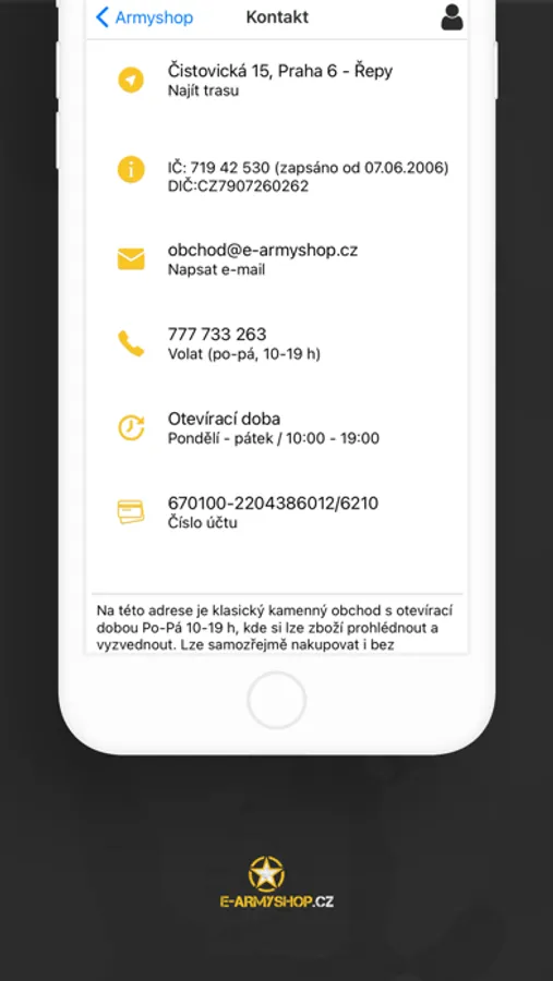 Oblečení, batohy, boty a jiné army vybavení vyhledáte pomocí naší aplikace Armyshop. Tak si neváhejte vybrat.