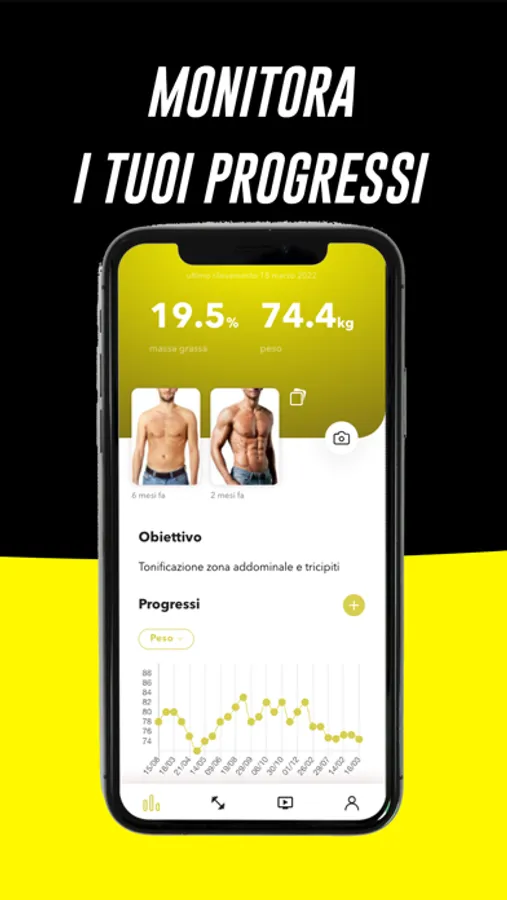 Avrai sempre sotto controllo la tua attività fisica: potrai visualizzare quali esercizi sono previsti nel tuo piano di allenamento, i tuoi progressi e come cambia il tuo fisico nel corso del tempo.