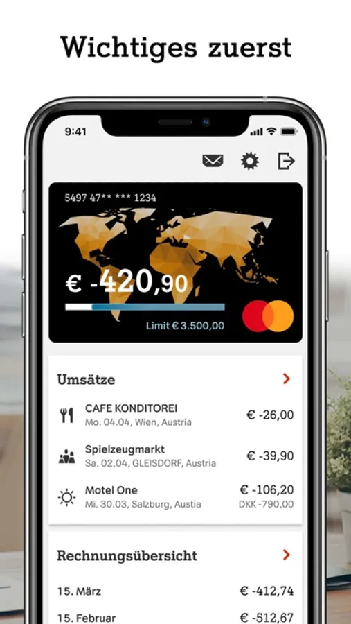 • Auf einen Blick: alle wichtigen Daten, Transaktionen und Monatsabrechnungen.