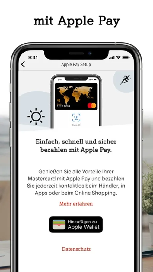 • Bequem und sicher: Nutzen Sie Apple Pay für Ihre Kreditkarte.