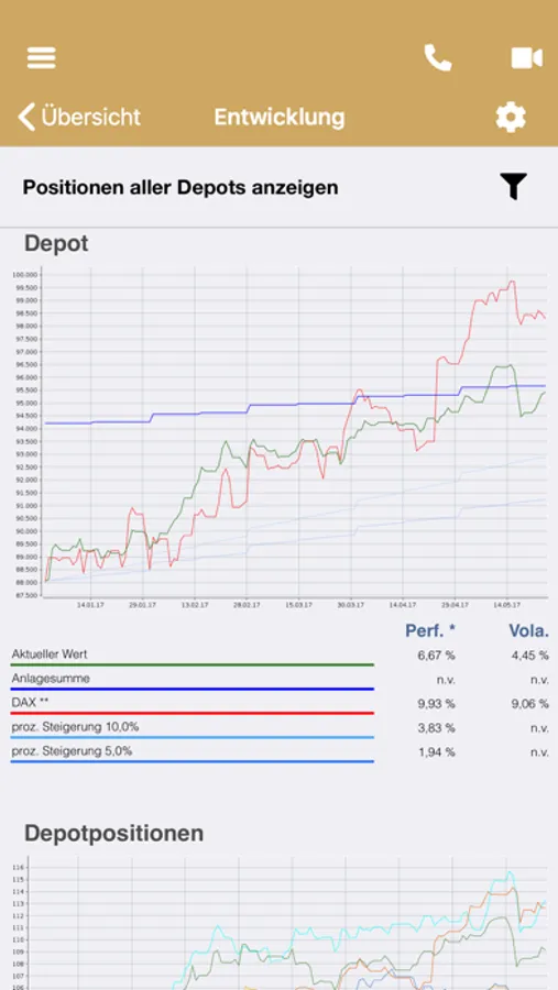- Konsolidierte Vermögensübersicht inkl. aller Fondsanteile, Versicherungen, Beteiligungen und Bankkonten