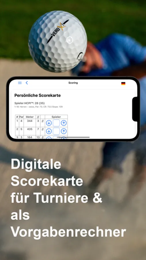 Mit der App haben Sie für jede Golfrunde den passenden Vorgabenrechner. Tragen Sie Ihre Scores in die App ein und Sie benötigen keine Scorekarte mehr von Ihrem Golfclub.