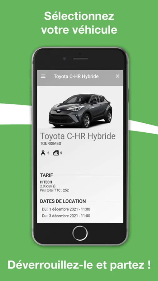 4 – Roulez en toute sérénité, l’application s’occupe de calculer la durée de la réservation, le kilométrage, l’essence et l’assurance le temps de votre trajet et de vos déplacements !