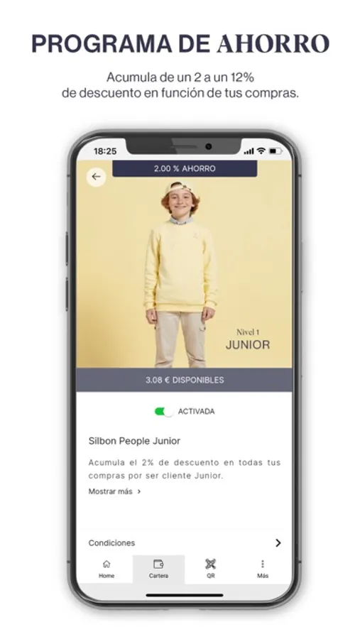 A través de la APP de Silbon podrás formar parte del programa de fidelización Silbon People mediante el cual podrás acumular descuento con todas tus compras y disfrutar de beneficios, recompensas y descuentos para canjear tanto online como en tienda física mostrando tu código QR.