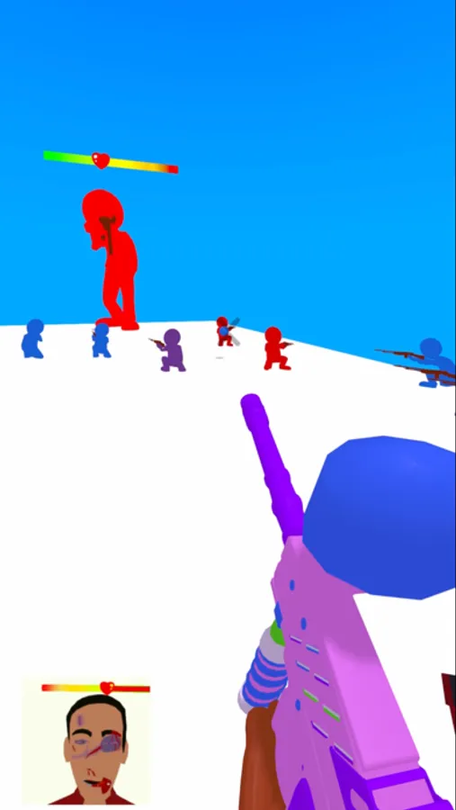 Paint the red soldiers to blue to fight the giant enemy.