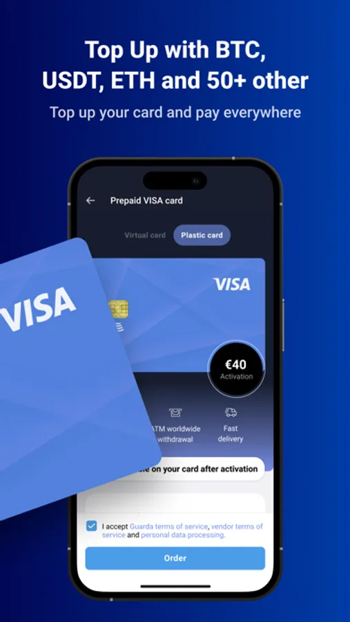 - Easy to spend your BTC, ETH, USDT, DOGE, and 50+ others