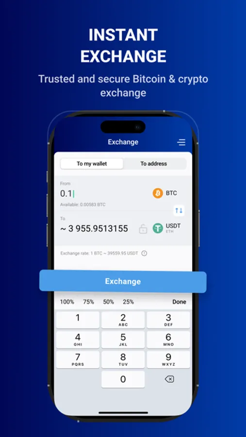 - Convert cryptocurrency to fiat instantly and spend anywhere