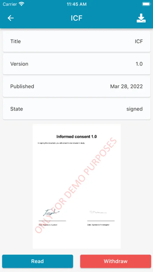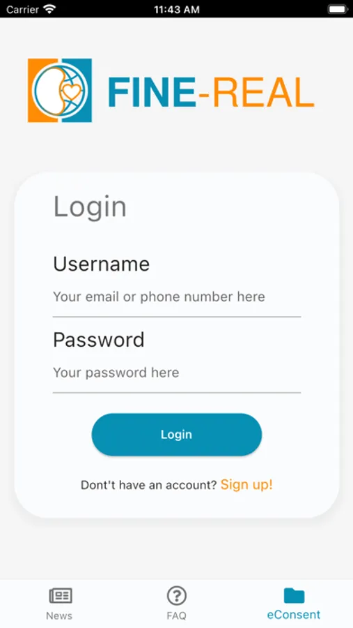 The FINE-REAL eConsent app of Alcedis GmbH is used to view and sign consent forms for the Bayer AG sponsored non-interventional trial FINE-REAL. To make an informed decision about whether to participate or not in this trial, people need to be informed various aspects. This information is provided to potential participants through the informed consent process. The app is specifically intended to provide these consent forms/information and to digitally collect and transmit signatures of the participant and the physician which is required for participation in the study.