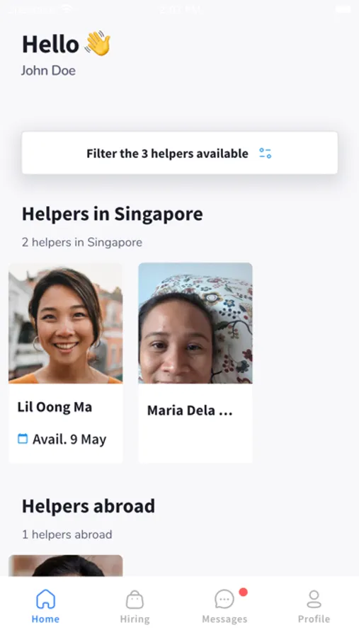 - Browse and access the screened profiles of helpers (maids or domestic workers) in Singapore and abroad