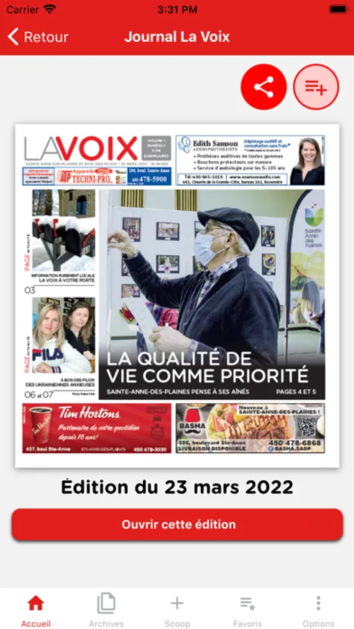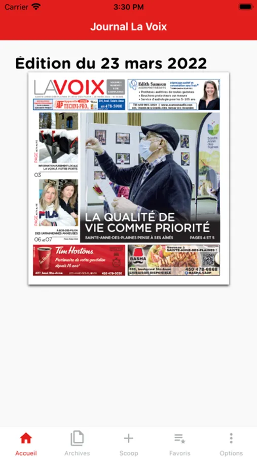 L'application gratuite La Voix vous branche à l'information de Sainte-Anne-des-Plaines, Bois-des-Filion et des environs. Consultez les éditions récentes et archivées où que vous soyez.