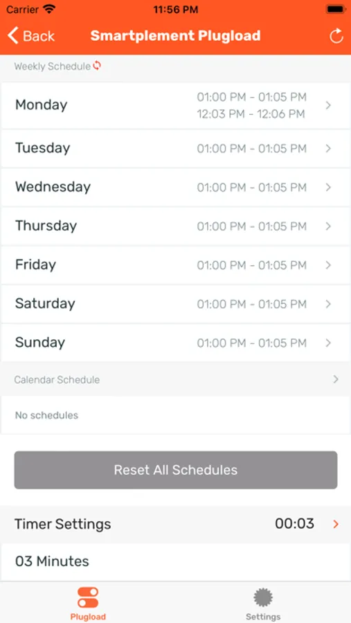 With the Smartplement Plugload app you can set different operation schedules for each PLC, with the ability to set weekly schedules or set specific dates through calendar schedules.