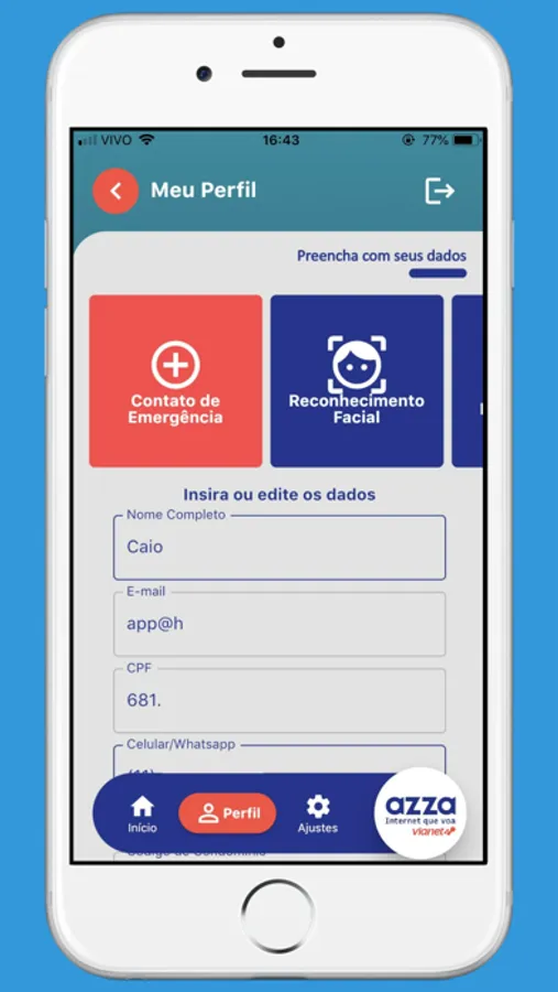 Seja bem-vindo(a) ao App da Azza / Vianet. Com ele você pode gerenciar seus dados, cadastrar seus dependentes e seus funcionários, visualizar suas encomendas, autorizar visitantes e prestadores de serviço e muito mais.