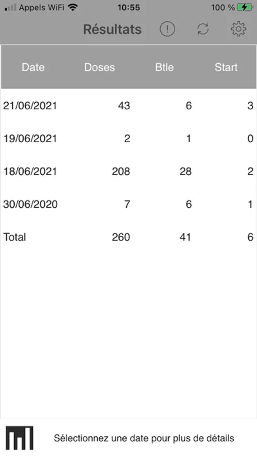 - visualiser l’évolution du nombre de doses/bouteilles servies jour par jour,