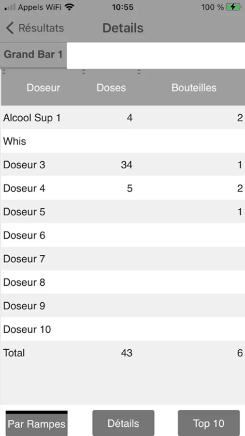 - configurer votre parc de rampes de doseurs (nommer chacune des rampes, doseurs et alcools servis, définir les heures de fonctionnement, paramétrer la durée de conservation des données…).