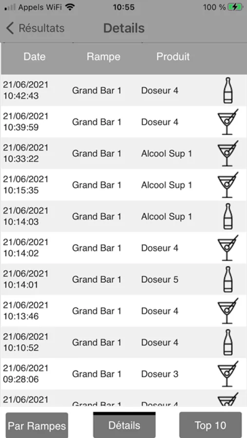- obtenir l’horodatage précis de chaque dose servie ou de chaque remplacement de bouteilles sur les rampes,