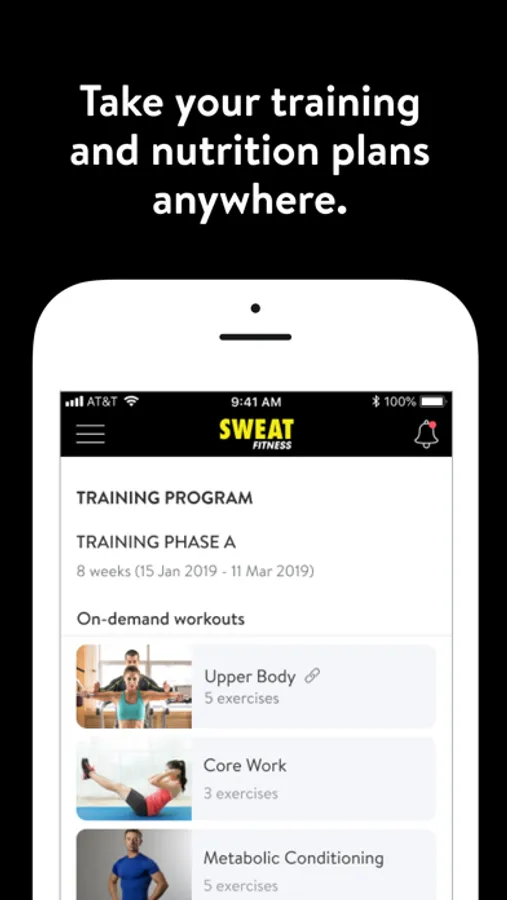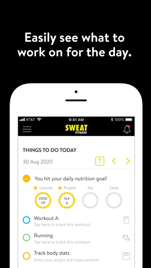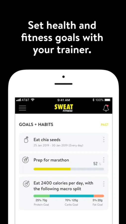 With the Sweat Fitness App, you can start tracking your workouts and meals, measuring results, and achieving your fitness goals, all with the help of your personal trainer.