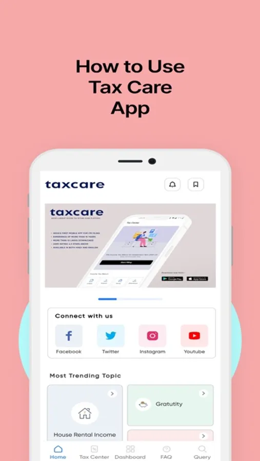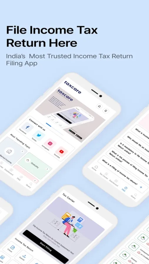Tax Care app is India’s largest income tax return filing platform on mobile that provide fast, easy and hassle free income tax return e-filing services anytime and anywhere.