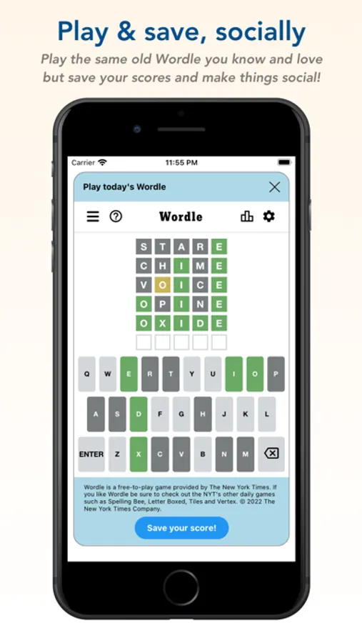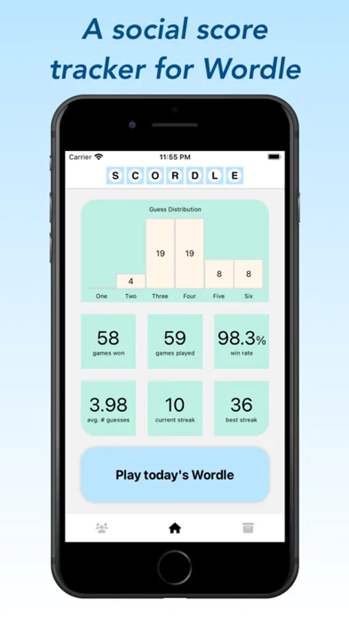 Scordle is a social score tracker for Wordle that lets you play and save your games, calculate and store your stats, check solution definitions and see how you rank amongst friends.